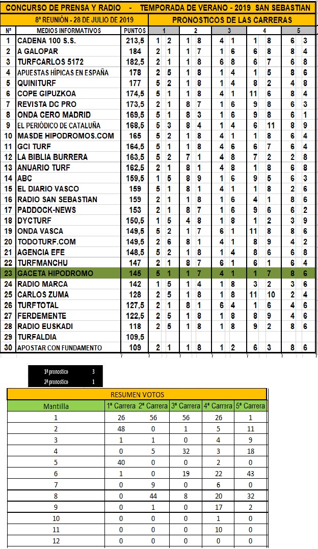 Concurso de Prensa y Radio - Temporada De Verano - 2019 San Sebastián: 8ª reunión - 28 de Julio de 2019