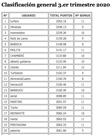 Os dejamos con los primeros 20 clasificados de cada trimestre.