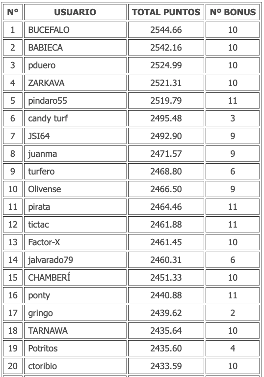 TURFERO se ha alzado como gran vencedor de la edición 2021 del Concurso de Pronósticos de la página y consigue su segunda estrella en el Hall of Fame. ¡Enhorabuena!