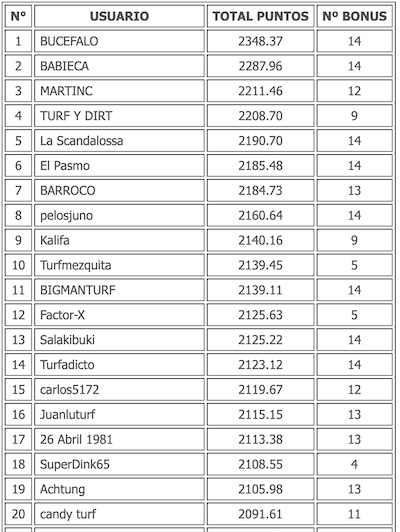 Os dejamos con los primeros 20 clasificados de cada trimestre.